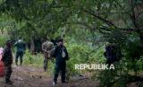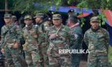 Tentara Kamboja berjaga di kawasan perbatasan Prey Chan, Banteay Meanchey, Kamboja. Meski gencatan senjata masih diberlakukan, penjagaan ketat kawasan perbatasan tetap dilakukan Tentara Kerajaan Kamboja akibat konflik perbatasan negara mereka dengan Thailand. (FOTO : Edwin Putranto/Republika)