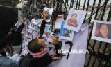 Mahasiswa memasang foto pejabat di gerbang DPRD Jabar saat aksi mahasiswa dari organisasi mahasiswa yang tergabung dalam Cipayung Plus, Senin (1/9/2025). Dalam aksi demo itu mahasiswa menuntut reformasi Polri, sahkan UU perampasan aset, pembenahan sistem pendidikan, hingga pencopotan Kapolri sebagai bentuk pertanggungjawaban atas kasus pelanggaran HAM. (FOTO : Edi Yusuf)