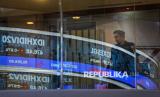 Refleksi karyawan berjalan didekat layar digital yang menampilkan pergerakan Indeks Harga Saham Gabungan (IHSG) di Bursa Efek Indonesia (BEI), Jakarta, Senin (1/9/2025). Indeks Harga Saham Gabungan (IHSG) Bursa Efek Indonesia (BEI) tercatat pada senin pagi dibuka melemah 210,39 poin atau 2,69 persen ke posisi 7.620,10. Sedangkan pada penutupan IHSG masih berada zona merah ke posisi 7.736,06 atau ditutup merosot 1,21 persen dari level 7.830,49. (FOTO : Republika/Prayogi)