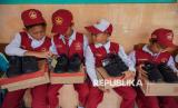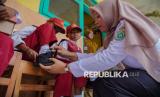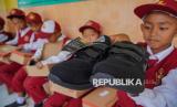 REPUBLIKA.CO.ID, LUMAJANG -- Guru membantu memakaikan sepatu gratis yang diterima siswa di SD Negeri Sumbermujur 02, Kecamatan Candipuro, Lumajang, Jawa Timur, Selasa (2/9/2025).