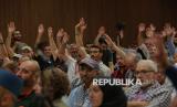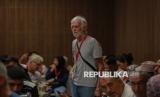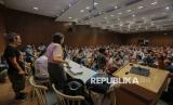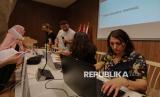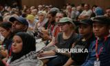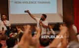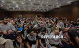Relawan dari puluhan negara yang tergabung dalam Global Sumud Flotilla mengikuti Pelatihan Non-Kekerasan dalam misi kemanusiaan Menembus Blokade Gaza di Gedung General Union of Tunisian Worker, Tunisia, Selasa (2/9/2025). Para relawan dari 44 negara ini termasuk sebanyak sekitar 30 relawan dari Indonesia yang tergabung dalam Indonesia Global Peace Convoy (IGPC) nantinya akan mengikuti pelayaran melalui jalur laut Mediterania dalam rangka mengantar bantuan kemanusiaan bagi warga Gaza. Sebelum berangkat, para relawan diwajibkan mengikuti pelatihan untuk memastikan kesiapan fisik, mental serta teknis dalam menghadapi tantangan selama pelayaran menuju Gaza. (FOTO : Republika/Thoudy Badai)