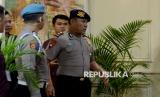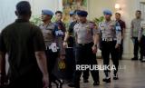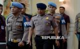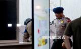 REPUBLIKA.CO.ID, JAKARTA -- Komandan Batalyon Resimen IV Korps Brimob Polri Kompol Cosmas Kaju Gae berjalan meninggalkan ruang sidang etik di Gedung TNCC Mabes Polri, Jakarta, Rabu (3/9/2025).