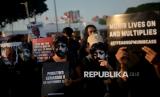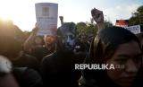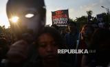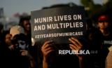 Aktivis Jaringan Solidaritas Korban untuk Keadilan mengikuti Aksi Kamisan ke-876 di depan Istana Merdeka, Jakarta, Kamis (4/9/2025). Aksi tersebut untuk mengenang 21 tahun pembunuhan aktivis Munir Said Thalib dan meminta Komnas HAM untuk segera menuntaskan penyelidikan pro-yustitia kasus pembunuhan Munir serta meminta Kepolisian RI segera menghentikan tindak kekerasan terhadap warga sipil, setop kriminalisasi terhadap aktivis dan membebaskan semua orang yang ditangkap karena mengekspresikan kritik. (FOTO : Edwin Putranto/Republika)