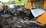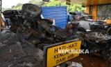 Anggota Sat Lantas Polresta Bogor Kota melihat gardu layanan tol yang rusak akibat ditabrak truk kontainer di Gerbang Tol Ciawi 2, Bogor, Jawa Barat, Kamis (4/9/2025). Truk kontainer dengan nomor polisi B-9647-UEL melaju dari arah Ciawi menuju Jakarta tersebut mengalami rem blong pada Kamis (4/9) pukul 02.30 WIB yang mengakibatkan seorang petugas tol mengalami luka ringan dan tiga gardu layanan mengalami kerusakan. (FOTO : ANTARA FOTO/Arif Firmansyah)