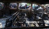 REPUBLIKA.CO.ID, KEDIRI -- Sejumlah warga bergotong royong membersihkan sisa-sisa kebakaran di kawasan perkantoran Pemkab Kediri, Jawa Timur, Jumat (5/9/2025).