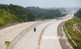 Warga mengendarai sepeda motor melintas di kawasan pembangunan Tol Serang-Panimbang seksi II, Cikulur, Lebak, Banten, Sabtu (6/9/2025). Pembangunan Jalan Tol Serang–Panimbang sepanjang 83,67 kilometer yang menjadi Proyek Strategis Nasional (PSN) ditargetkan dapat beroperasi penuh pada tahun 2027 mendatang dan diharapkan dapat mendorong pertumbuhan ekonomi di Provinsi Banten. (FOTO : ANTARA FOTO/Muhammad Bagus Khoirunas)