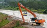 REPUBLIKA.CO.ID, LEBAK -- Pekerja mengoperasikan ekskavator untuk mengeruk tanah di kawasan pembangunan Tol Serang-Panimbang seksi II, Cikulur, Lebak, Banten, Sabtu (6/9/2025).