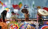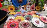 Pengunjung mengamati payung tradisional pada Festival Payung Indonesia 2025 bertajuk Catra Panji di Taman Balekambang, Solo, Jawa Tengah, Ahad (7/9/2025). Festival payung yang melibatkan seniman, kreator, pelaku UMKM, dan artisan payung se-Indonesia itu diharapkan dapat mendongkrak kunjungan wisatawan hingga 27.000 orang dengan target perputaran uang mencapai Rp1 miliar.  (FOTO : ANTARA FOTO/Maulana Surya)