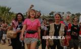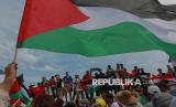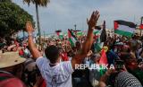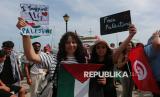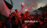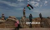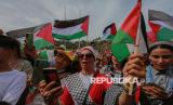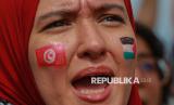REPUBLIKA.CO.ID, TUNISIA -- Warga bersama relawan menyambut aktivis kemanusiaan Greta Thunberg, Thiago Avila dan Yasemin Akar saat tiba di Pelabuhan Sidi Bou Said, Tunisia, Ahad (6/9/2025).