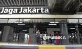 Penumpang bus transjakarta melintas di Halte Jaga Jakarta, Senen, Senin (8/9/2025). Nama Jaga Jakarta dipilih sebagai pengingat pentingnya menjaga keamanan dan ketertiban secara bersama-sama. (FOTO : Republika/Prayogi)