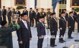 REPUBLIKA.CO.ID, JAKARTA -- Presiden Prabowo melantik menteri dan wakil menteri Kabinet Merah Putih di Istana Negara, Kompleks Istana Kepresidenan, Jakarta, Senin (8/9/2025).