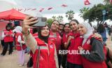 Panitia relawan berswafoto saat persiapan pelatihan pelayaran Global Sumud Flotilla di Pelabuhan Sidi Bou Said, Tunisia, Rabu (10/9/2025). Gerakan pelayaran akbar menuju gaza tersebut diikuti oleh ratusan relawan dan aktvis dari 44 negara dengan melakukan konvoi menggunakan sekitar 70 kapal mengarungi lautan mediterania hingga mampu menembus perairan Gaza untuk membuka blokade dari Israel sehingga kapal bantuan dapat mengirimkan bantuan kemanusiaan untuk masyarakat Palestina. (FOTO : Republika/Thoudy Badai)