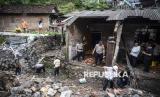 Sejumlah petugas gabungan berada di area lokasi tanggul longsor di Karanganyar Gunung, Candisari, Semarang, Jawa Tengah, Kamis (11/9/2025). Badan Penanggulangan Bencana Daerah (BPBD) Kota Semarang menyebutkan bahwa tanggul setinggi 15 meter dan sepanjang 150 menter itu longsor akibat pondasi lama yang tidak lagi mampu menahan beban setelah diguyur hujan deras pada Rabu (11/9) serta menyebabkan satu rumah mengalami kerusakan dan banjir di kawasan tersebut. (FOTO : ANTARA FOTO/Aprillio Akbar)