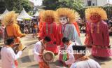 REPUBLIKA.CO.ID, JAKARTA -- Sejumlah seniman ondel-ondel tampil dalam parade HUT ke-25 Perkampungan Budaya Betawi Setu Babakan di Srengseng Sawah Jakarta, Sabtu (13/9/2025).