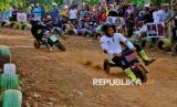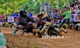 REPUBLIKA.CO.ID, KENDAL -- Dua peserta balap Gledekan beradu cepat saat Festival Gledekan Nusantara musim #5 di sirkuit Hutan Edukasi Kalisuren, Sidodadi, Patean, Kendal, Jawa Tengah, Ahad (14/9/2025).