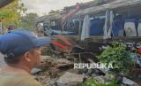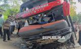REPUBLIKA.CO.ID, PROBOLINGGO -- Kondisi bus pariwisata dengan nomor polisi P 7221 UG yang mengalami kecelakaan lalu lintas di Desa Botoh, Kecamatan Lumbang, Kabupaten Probolinggo, Jawa Timur, Ahad (14/9/2025).