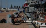 REPUBLIKA.CO.ID, TUNISIA -- Relawan dan aktivis Global Sumud Flotilla beraktivitas sebelum bertolak menuju Gaza melalui Pelabuhan Bizerte di Tunisia, Ahad (14/9/2025).