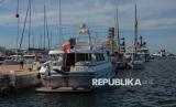 Sebanyak sekitar 20 kapal GSF yang tiba di Tunisia akan melakukan pelayaran akbar menembus blokade Gaza melalui laut Mediterania untuk membuka koridor bantuan kemanusiaan. Sebelumnya Puluhan kapal yang berangkat dari Barcelona tiba di Pelabuhan Sidi Bou Said pada Ahad 7 September lalu. (FOTO : Republika/Thoudy Badai)