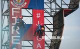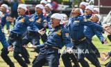 Sejumlah petugas meneriakkan yel-yel pada pembukaan Jakarta Fire Safety Challenge 2025 di Kantor Dinas Penanggulangan Kebakaran dan Penyelamatan (Gulkarmat) Provinsi DKI Jakarta, Senin (15/9/2025). Kegiatan tersebut diikuti 440 relawan pemadam kebakaran dari 44 tim kecamatan, serta 1.456 anggota tim tanggap darurat dari 112 perusahaan guna meningkatkan kemampuan petugas tanggap darurat gedung maupun masyarakat dalam menghadapi potensi kebakaran.  (FOTO : ANTARA FOTO/Sulthony Hasanuddin)