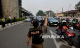 Petugas Satpol PP mengatur Kendaraan roda empat yang terjebak kemacetan saat pelaksanaan rekayasa lalu lintas di Gerbang Tol (GT) Fatmawati 2 kawasan Jalan TB Simatupang, Jakarta, Senin (15/9/2025). Pemprov DKI Jakarta melakukan uji coba rekayasa lalu lintas dengan skema pembukaan GT Fatmawati 2 paling kiri secara gratis hingga pintu keluar Lebak Bulus. Uji coba ini rencananya akan berlangsung hingga Jumat (19/9) untuk mengatasi kemacetan di kawasan tersebut.  (FOTO : Edwin Putranto/Republika)