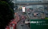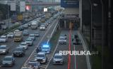 Kendaraan roda empat melintasi jalan Tol TB Simatupang secara gratis (lajur paling kanan) saat pelaksanaan rekayasa lalu lintas di Gerbang Tol (GT) Fatmawati 2 kawasan Jalan TB Simatupang, Jakarta, Senin (15/9/2025). Pemprov DKI Jakarta melakukan uji coba rekayasa lalu lintas dengan skema pembukaan GT Fatmawati 2 paling kiri secara gratis hingga pintu keluar Lebak Bulus. Uji coba ini rencananya akan berlangsung hingga Jumat (19/9) untuk mengatasi kemacetan di kawasan tersebut.  (FOTO : Edwin Putranto/Republika)