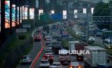 Kendaraan terjebak kemacetan di kawasan Jalan TB Simatupang, Jakarta, Senin (15/9/2025). Pemprov DKI Jakarta melakukan uji coba rekayasa lalu lintas dengan skema pembukaan GT Fatmawati 2 paling kiri secara gratis hingga pintu keluar Lebak Bulus. Uji coba ini rencananya akan berlangsung hingga Jumat (19/9) untuk mengatasi kemacetan di kawasan tersebut.  (FOTO : Edwin Putranto/Republika)