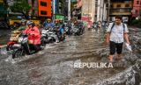 REPUBLIKA.CO.ID, JAKARTA -- Sejumlah pengendara dan pejalan kaki melintasi genangan air usai hujan deras di depan Pasar Cipulir, Jakarta, Selasa (16/9/2025).
