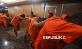 REPUBLIKA.CO.ID, JAKARTA -- Sejumlah tersangka dihadirkan saat pengungkapan kasus pembunuhan kepala cabang Bank Rakyat Indonesia (BRI) di Gedung Ditreskrimum Polda Metro Jaya, Jakarta, Selasa (16/9/2025).