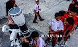 REPUBLIKA.CO.ID, JAKARTA -- Petugas mendampingi siswa mengamati matahari menggunakan teleskop Refraktor saat Astronomi Goes To School di SDN Kalideres 05, Jakarta, Selasa (16/9/2025).