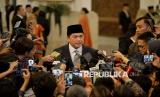 Menteri Pemuda dan Olahraga Erick Thohir memberikan keterangan kepada wartawan seusai pelantikan menteri dan wakil menteri Kabinet Merah Putih di Istana Negara, Jakarta, Rabu (17/9/2025). Presiden Prabowo melantik sejumlah pejabat pemerintahan diantaranya Menteri Koordinator Bidang Politik dan Keamanan Djamari Chaniago, Menteri Pemuda dan Olahraga Erick Thohir, Wakil Menteri Ketenagakerjaan Afriansyah Noor, Wakil Menteri Kehutanan Rohmat Marzuki, Wakil Menteri Koperasi Faridah Faridjah, Kepala Badan Komunikasi Pemerintah Angga Raka Prabowo dan Kepala Kantor Staf Kepresidenan M Qodari.  (FOTO : Edwin Putranto/Republika)