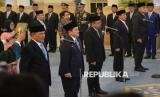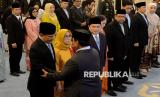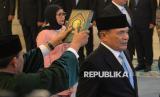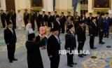 REPUBLIKA.CO.ID, JAKARTA -- Pejabat negara mengucapkan sumpah jabatan saat pelantikan menteri dan wakil menteri Kabinet Merah Putih di Istana Negara, Jakarta, Rabu (17/9/2025).