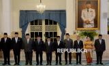 Sejumlah menteri dan pejabat negara menghadiri pelantikan menteri dan wakil menteri Kabinet Merah Putih di Istana Negara, Jakarta, Rabu (17/9/2025). Presiden Prabowo melantik sejumlah pejabat pemerintahan diantaranya Menteri Koordinator Bidang Politik dan Keamanan Djamari Chaniago, Menteri Pemuda dan Olahraga Erick Thohir, Wakil Menteri Ketenagakerjaan Afriansyah Noor, Wakil Menteri Kehutanan Rohmat Marzuki, Wakil Menteri Koperasi Faridah Faridjah, Kepala Badan Komunikasi Pemerintah Angga Raka Prabowo dan Kepala Kantor Staf Kepresidenan M Qodari.  (FOTO : Edwin Putranto/Republika)