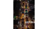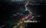 Foto udara sejumlah kendaraan terjebak kemacetan saat jam operasional truk tambang di Parung Panjang, Kabupaten Bogor, Jawa Barat, Jumat (19/9/2025). Pemerintah Kabupaten Bogor menerapkan relaksasi jam operasional truk tambang di Parung Panjang hingga akhir Desember 2025 selama berlangsungnya proyek perbaikan jalan dengan jadwal truk kosongan diizinkan melintas pada pukul 09.00–11.00 WIB dan 13.00–16.00 WIB, sementara truk bermuatan hanya dapat beroperasi malam hari mulai pukul 22.00–05.00 WIB. (FOTO : ANTARA FOTO/Putra M. Akbar)