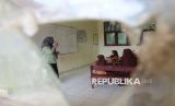 REPUBLIKA.CO.ID, ACEH BARAT -- Dua orang siswi menangis saat menyimak informasi penutupan sekolahnya di Sekolah Dasar Negeri Paya Baro, Kecamatan Meureubo, Aceh Barat, Aceh, Sabtu (20/9/2025).