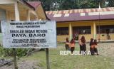 Sejumlah siswi SD Negeri Paya Baro pulang sekolah di Meureubo, Aceh Barat, Aceh, Sabtu (20/9/2025). Dinas Pendidikan dan Kebudayaan (Disdikbud) Kabupaten Aceh Barat akan menutup tujuh sekolah yang terdiri dari SMP Swasta Kubu Capang, SDN Lueng Baro, SDN Lango Trasmigrasi, SDN Krueng Meulaboh, SDN Alpen 1 Meureubo, SDN Paya Baro dan SDN Cot Buloh disebabkan kekurangan siswa atau jumlah siswa yang tidak memenuhi standar. (FOTO : ANTARA FOTO/Syifa Yulinnas)