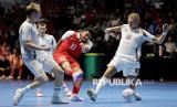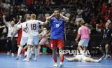 REPUBLIKA.CO.ID, JAKARTA -- Timnas futsal Indonesia berhadapan dengan Timnas futsal Latvia pada turnamen Futsal Four Nations Cup 2025 di GBK Basket Hall, Senayan, Jakarta, Ahad (21/9/2025).