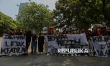 Aksi memperingati 26 Tahun Tragedi Semanggi II di gelar di Kampus Universitas Kalotik Indonesia Atma Jaya, Semanggi, Jakarta, Rabu (24/9/2025). (FOTO : Republika/Thoudy Badai)