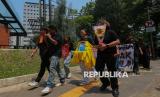 Mahasiswa Universitas Katolik Indonesia Atma Jaya menggelar aksi memperingati 26 Tahun Tragedi Semanggi II di Kampus Universitas Kalotik Indonesia Atma Jaya, Semanggi, Jakarta, Rabu (24/9/2025). Sosok Yap Yun Hap kini menjadi simbol perjuangan dan perlawanan mahasiswa terhadap segala bentuk kekerasan dalam pelanggaran HAM. (FOTO : Republika/Thoudy Badai)