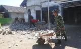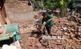 Warga membersihkan reruntuhan rumah terdampak gempa di Desa Sumberwaru, Banyuputih, Situbondo, Jawa Timur, Jumat (26/9/2025). Badan Meteorologi, Geofisika, dan Klimatologi (BMKG) melaporkan gempa pada Kamis (25/9) sore dengan pusat gempa bermagnitudo 5,7 ini 46 kilometer timur laut Banyuwangi, dengan kedalaman 12 kilometer dan tidak berpotensi tsunami. (FOTO : ANTARA FOTO/Seno)