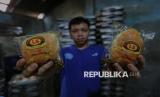 Pekerja menyelesaikan pembuatan roti di rumah produksi roti Langgeng Sari Bakery, Jalan Pejompongan Raya, Tanah Abang, Jakarta Pusat, Selasa (30/9/2025). Menurut sejumlah pekerja, kondisi tersebut lantaran daya beli masyarakat yang menurun, persaingan penjualan melalui daring hingga kenaikan sejumlah bahan baku. (FOTO : Republika/Thoudy Badai)