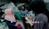 Nasabah Bank Sampah Gunung Emas binaan PT Pegadaian menukarkan sampah plastik di Rawamangun, Jakarta Timur, Selasa (30/9/2025). Bank Sampah Gunung Emas binaan PT Pegadaian memiliki 277 nasabah yang memanfaatkan tabungan emas Pegadaian. Setiap bulannya, Bank Sampah Gunung Emas mengumpulkan sampah plastik hingga 15 ton. PT Pegadaian berkomitmen untuk terus mendorong pengelolaan sampah di Indonesia salah satunya dengan program The Gade Clean and Gold Memilah Sampah Menabung Emas. Langkah ini merupakan bagian dari pengembangan sistem Bank Emas yang terintegrasi dalam rangka #mengEMASkanindonesia. (FOTO : Edwin Putranto/Republika)