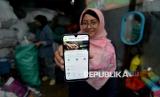 Nasabah Bank Sampah Gunung Emas, Rosmawati menunjukkan aplikasi Pegadaian Peduli saat menukarkan sampah plastik di Bank Sampah Gunung Emas binaan PT Pegadaian di Rawamangun, Jakarta Timur, Selasa (30/9/2025). Rosmawati memanfaatkan sampah plastik untuk dikonversi menjadi tabungan emas di Pegadaian sebagai investasi biaya pendidikan anak. PT Pegadaian berkomitmen untuk terus mendorong pengelolaan sampah di Indonesia salah satunya dengan program The Gade Clean and Gold Memilah Sampah Menabung Emas. Langkah ini merupakan bagian dari pengembangan sistem Bank Emas yang terintegrasi dalam rangka #mengEMASkanindonesia. (FOTO : Edwin Putranto/Republika)