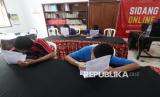 Empat tahanan kasus penjarahan mengerjakan soal ujian sekolah di Lembaga Pemasyarakatan Kelas IIA Kediri, Kota Kediri, Jawa Timur, Selasa (30/9/2025). Sebanyak empat pelajar setingkat SMA yang menjadi tahanan kasus penjarahan saat kerusuhan pada Sabtu (30/8) tersebut menjalani ujian tengah semester di dalam lapas. (FOTO : ANTARA FOTO/Prasetia Fauzani)
