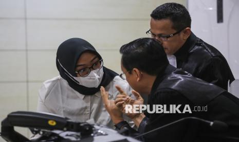 Terdakwa kasus kasus pemerasan terhadap mahasiswa Program Pendidikan Dokter Spesialis Anastesi (PPDS) Universitas Diponegoro (Undip), Zara Yupita Azra (kiri) berdialog dengan kuasa hukum usai pembacaan vonis dalam sidang di Pengadilan Negeri Kota Semarang, Jawa Tengah, Rabu (1/10/2025). Majelis Hakim memvonis mantan Kaprodi Anestesiologi FK UNDIP Taufik Eko Nugroho dengan hukuman dua tahun penjara dan mantan Kepala Staf Medis Prodi Anestesiologi FK Undip Sri Maryani serta dokter PPDS Anestesiologi FK Undip Zara Yupita Azra masing-masing divonis sembilan bulan penjara karena terbukti melanggar Pasal 368 Ayat 1 tentang tindak pidana pemerasan. (FOTO : ANTARA FOTO/Makna Zaezar)