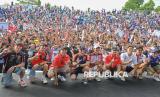 REPUBLIKA.CO.ID, MATARAM -- Sejumlah pembalap MotoGP berpose dengan penggemarnya saat mengikuti MotoGP Riders Parade di Jalan Udayana, Mataram, NTB, Rabu (1/10/2025).