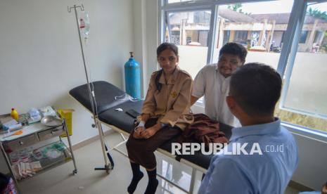 REPUBLIKA.CO.ID, AGAM -- Seorang siswi yang diduga korban keracunan MBG mendapatkan perawatan di Puskesmas Manggopoh, Nagari Kampuang Tangah, Lubuk Basung, Agam, Sumatera Barat, Kamis (2/10/2025).