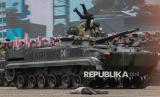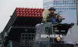 Prajurit Korps Marinir TNI AL dengan alutsista melakukan defile saat gladi bersih Hari Ulang Tahun (HUT) ke-80 Tentara Nasional Indonesia (TNI) di Monas, Jakarta, Jumat (3/10/2025). Gladi bersih tersebut digelar dalam rangka persiapan HUT ke-80 TNI yang mengerahkan sekitar 140 ribu pasukan TNI pada Minggu, 5 Oktober 2025 (FOTO : Republika/Thoudy Badai)
