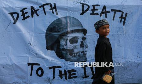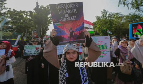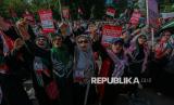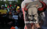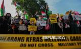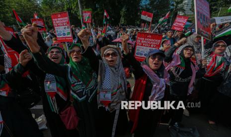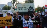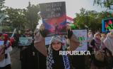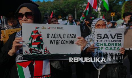 Dalam aksinya, massa mengecam tindakan Israel atas penculikan terhadap ratusan relawan dan aktivis Global Sumud Flotilla (GSF) di perairan internasional saat akan menyalurkan bantuan kemanusiaan kepada warga Gaza melalui jalur laut.