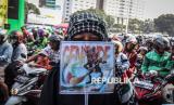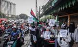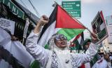 REPUBLIKA.CO.ID, JAKARTA -- Peserta yang tergabung dalam Free Palestine Network membawa poster dukungan saat aksi solidaritas Palestina di Kawasan Tugu Tani, Jakarta, Ahad (5/10/2025).