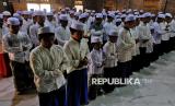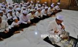 Sejumlah santri melaksanakan doa bersama untuk korban meninggal ambruknya mushala Ponpes Al Khoziny Sidoarjo di masjid kompleks Pondok Pesantren Tahfidz Tebuireng 16 Wadas, Kandangan, Temanggung, Jawa Tengah, Ahad (5/10/2025). Kegiatan shalat ghaib dan doa bersama sebagai wujud solidaritas dan keprihatinan sesama santri tersebut untuk mendoakan agar korban meninggal mendapat husul khotimah, korban luka segera sembuh dan tim SAR diberi kelancaran dalam proses evakuasi musibah ambruknya mushalla ponpes Al Khoziny Sidoarjo. (FOTO : ANTARA FOTO/Anis Efizudin)